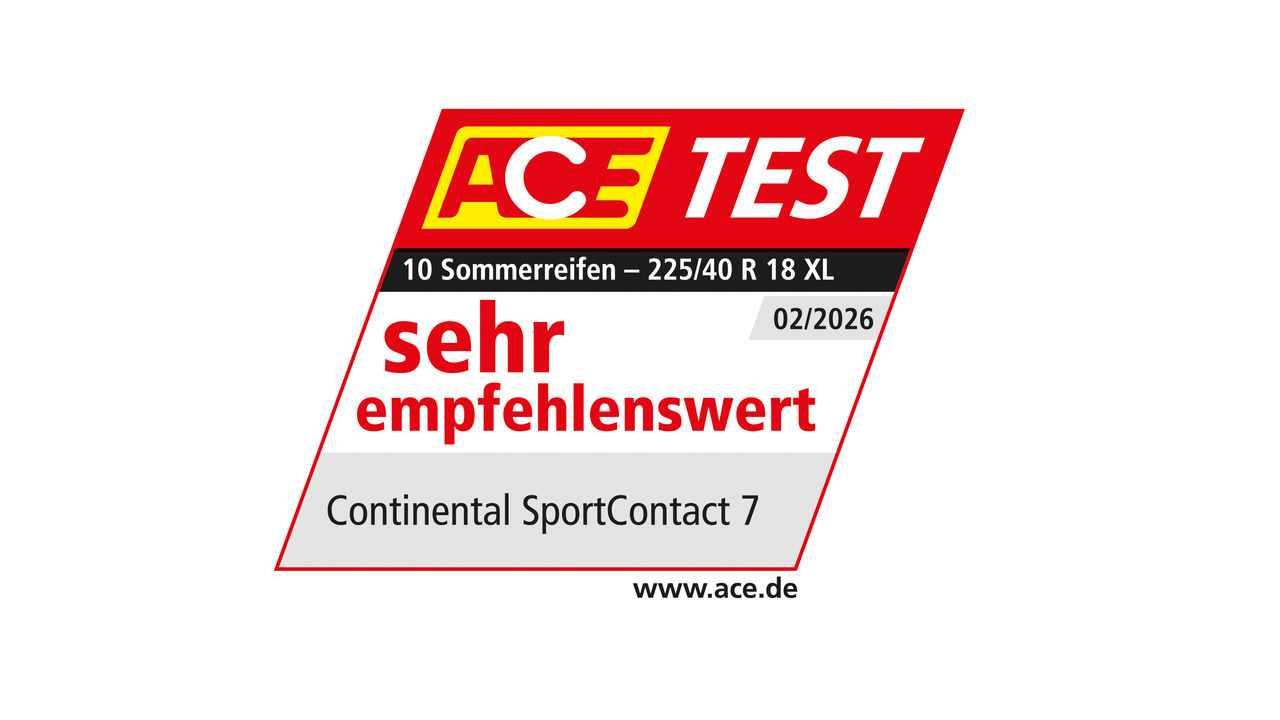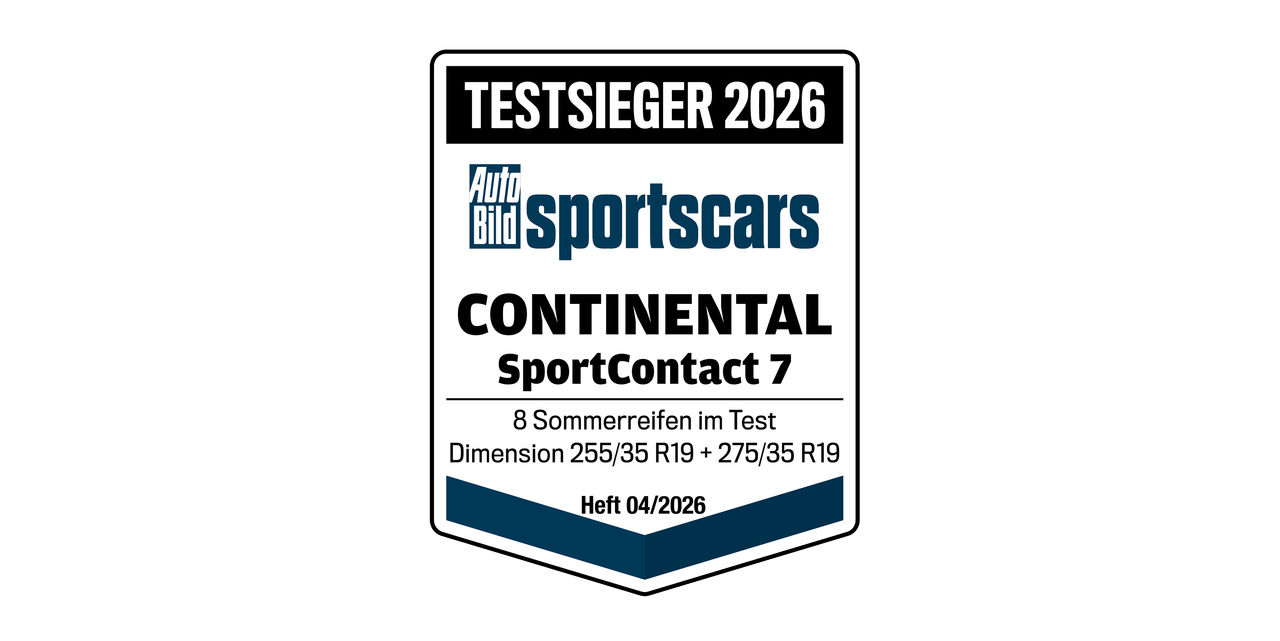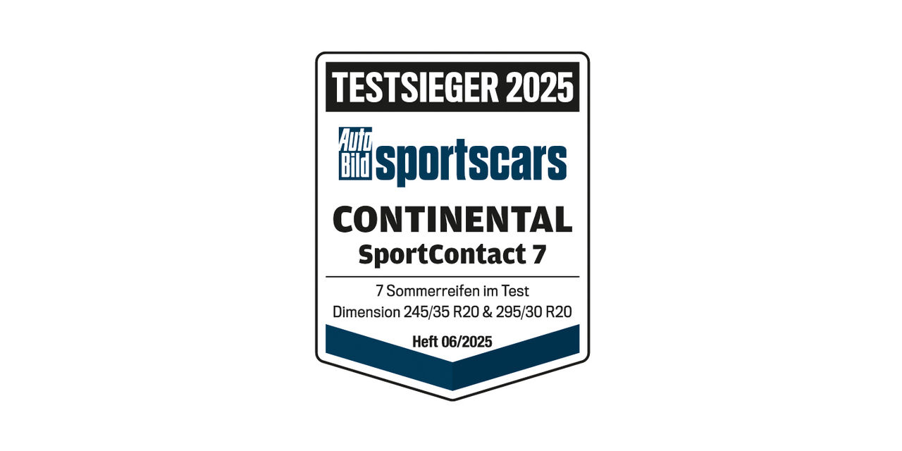 Der Continental SportContact 7 überzeugt seit Jahren. Nicht nur als High-Performer auf der Straße, sondern auch in zahlreichen Tests unabhängiger Experten. Er ist der Seriensieger unter den Hochleistungsreifen, mit beindruckenden 14 Testsiegen in 16 Reifentests* seit 2022, darunter allein drei Testsiege im Jahr 2025.
